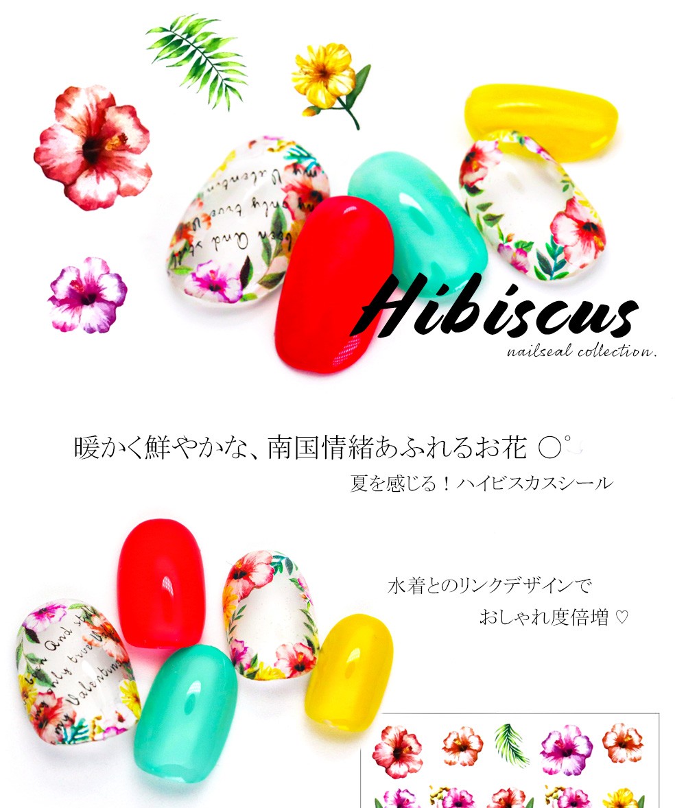 [ネコポス送料無料]ウォーターネイルシール[水タイプ]ハイビスカスシール [DS-389]セルフネイル ジェルネイル