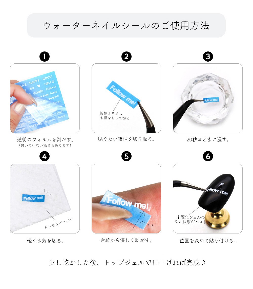 4.爪に貼り、ワイプなどで上からそっと押さえる。