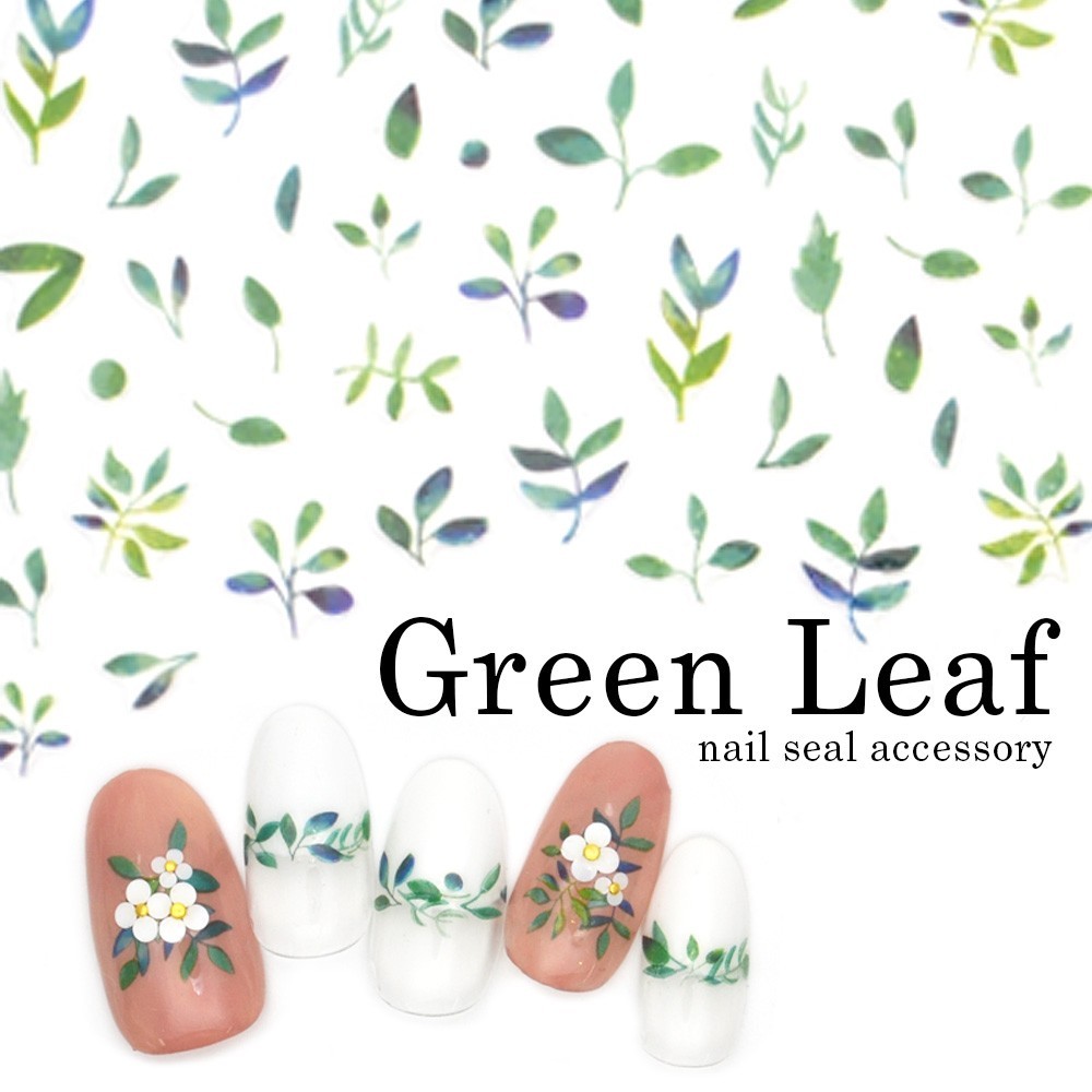 グリーンが鮮やかなリーフのネイルシール。