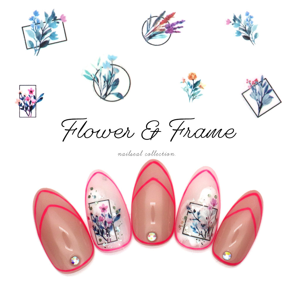 フラワーブーケがフレームに入ったアートなネイルシール!