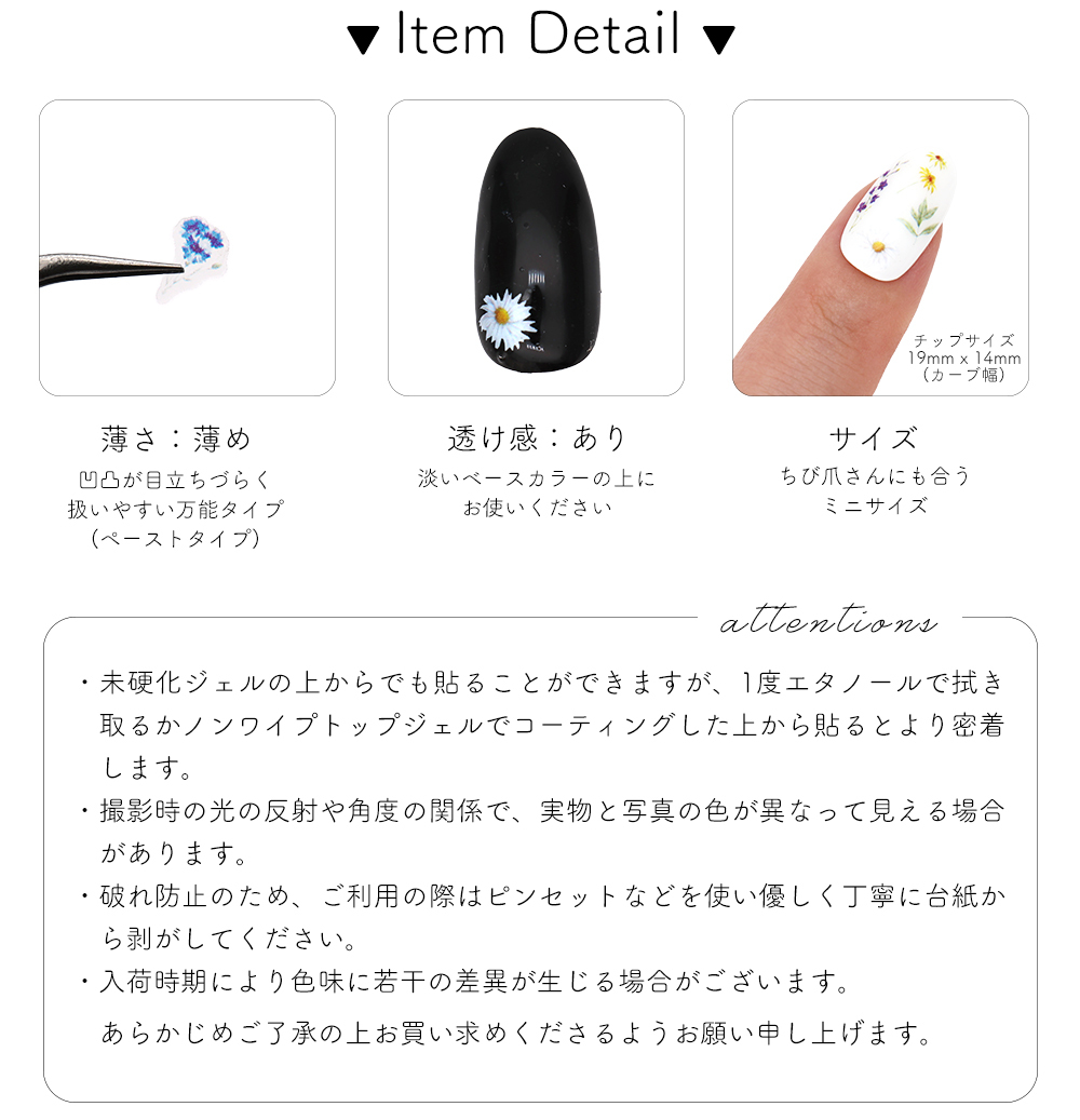 ノンワイプトップジェルでコーティングした上から貼るとより密着します。
