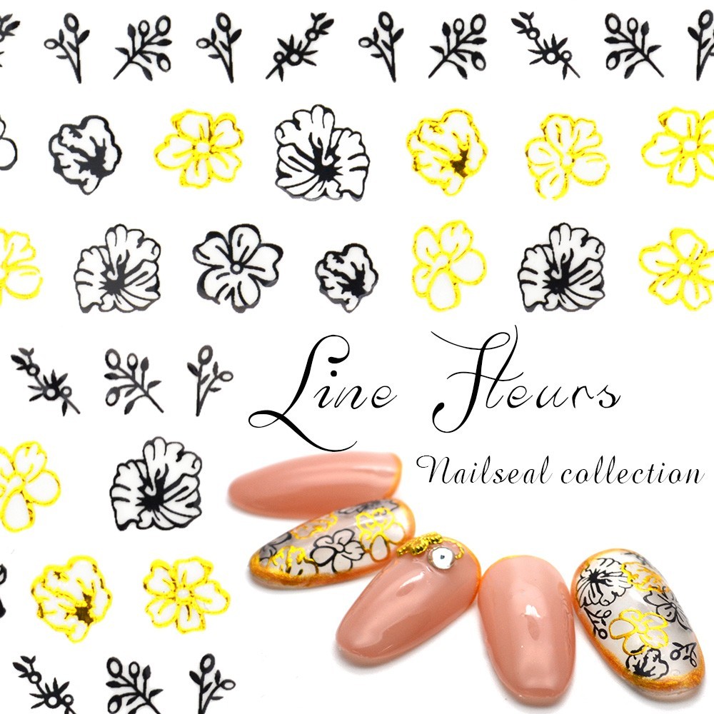 [ネコポス送料無料]ラインフルール [ブラック/ホワイト]フラワー 花 和 洋 モダン レース ネイルシール ジェルネイル