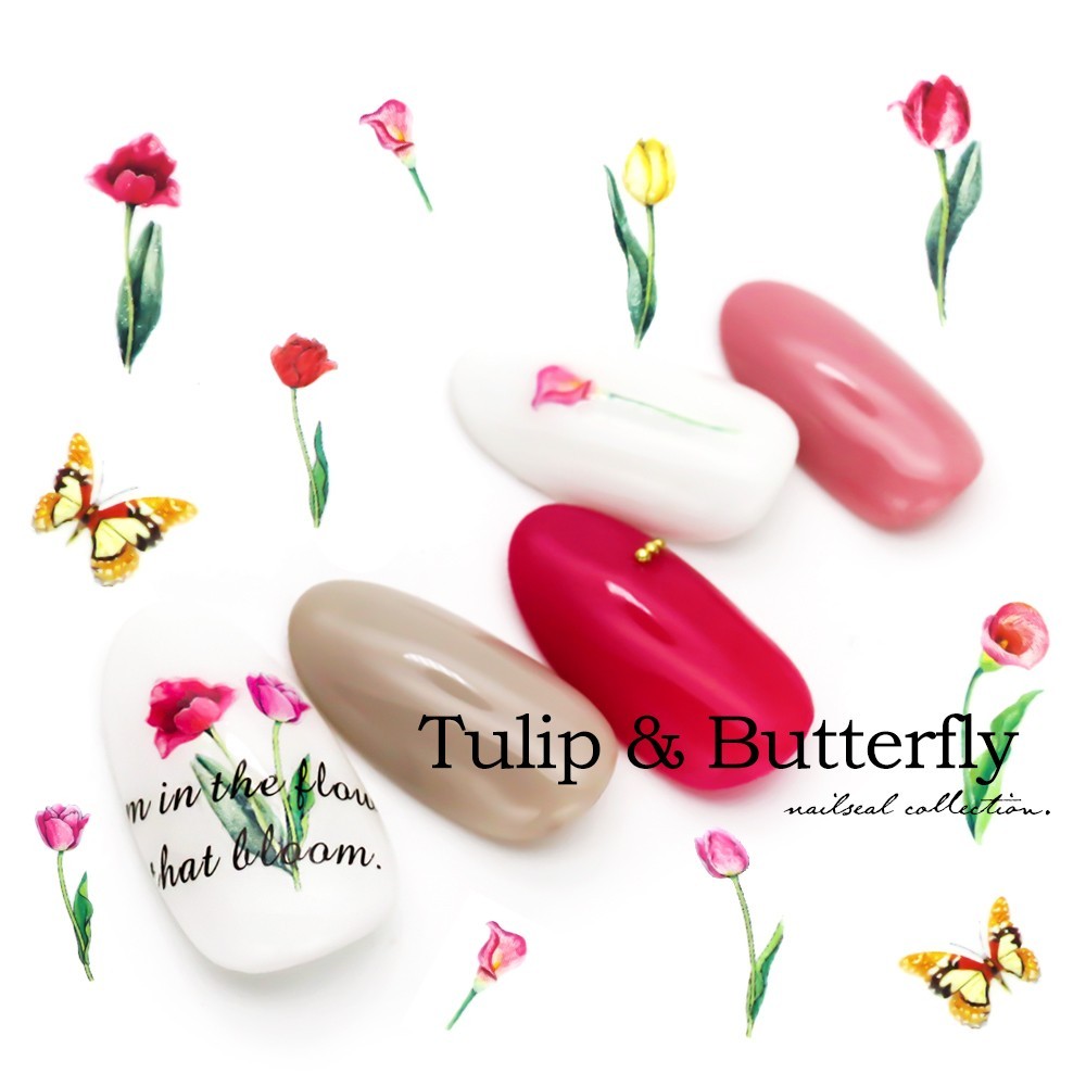 チューリップ、カラー(花)柄の『フラワー 蝶シール』 が新登場 ○゜