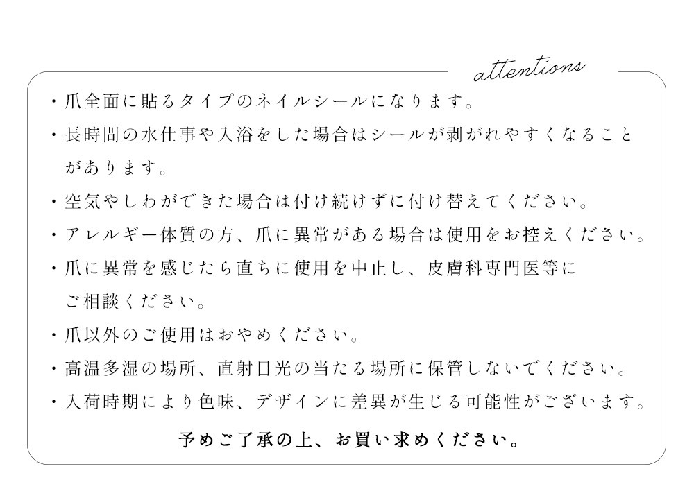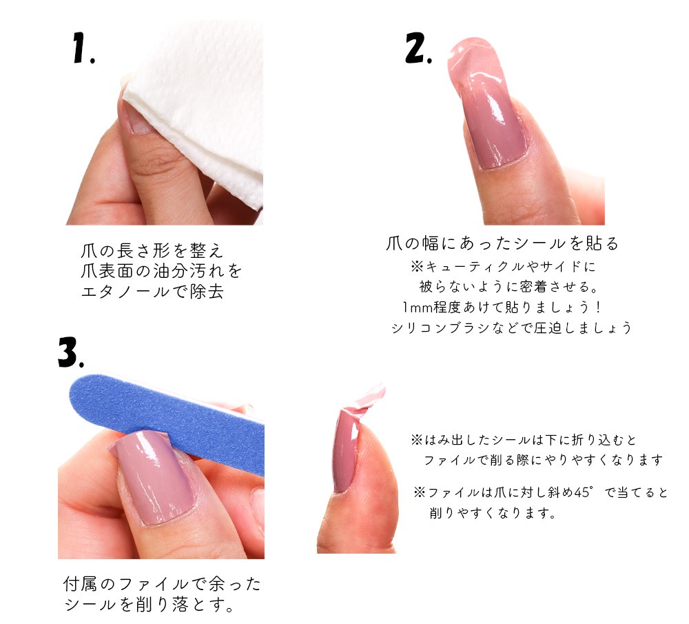 ・長時間の入浴や水仕事をした場合剥がれやすくなる可能性がございます。