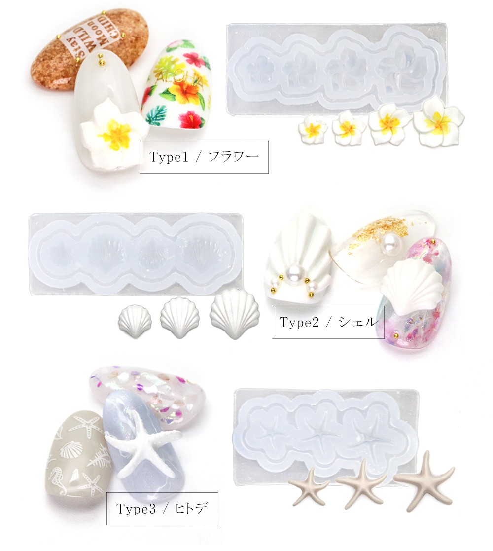 [ネコポス送料無料]ネイルツール シリコンモールド [フラワー/シェル/ヒトデ]セルフネイル ジェルネイル