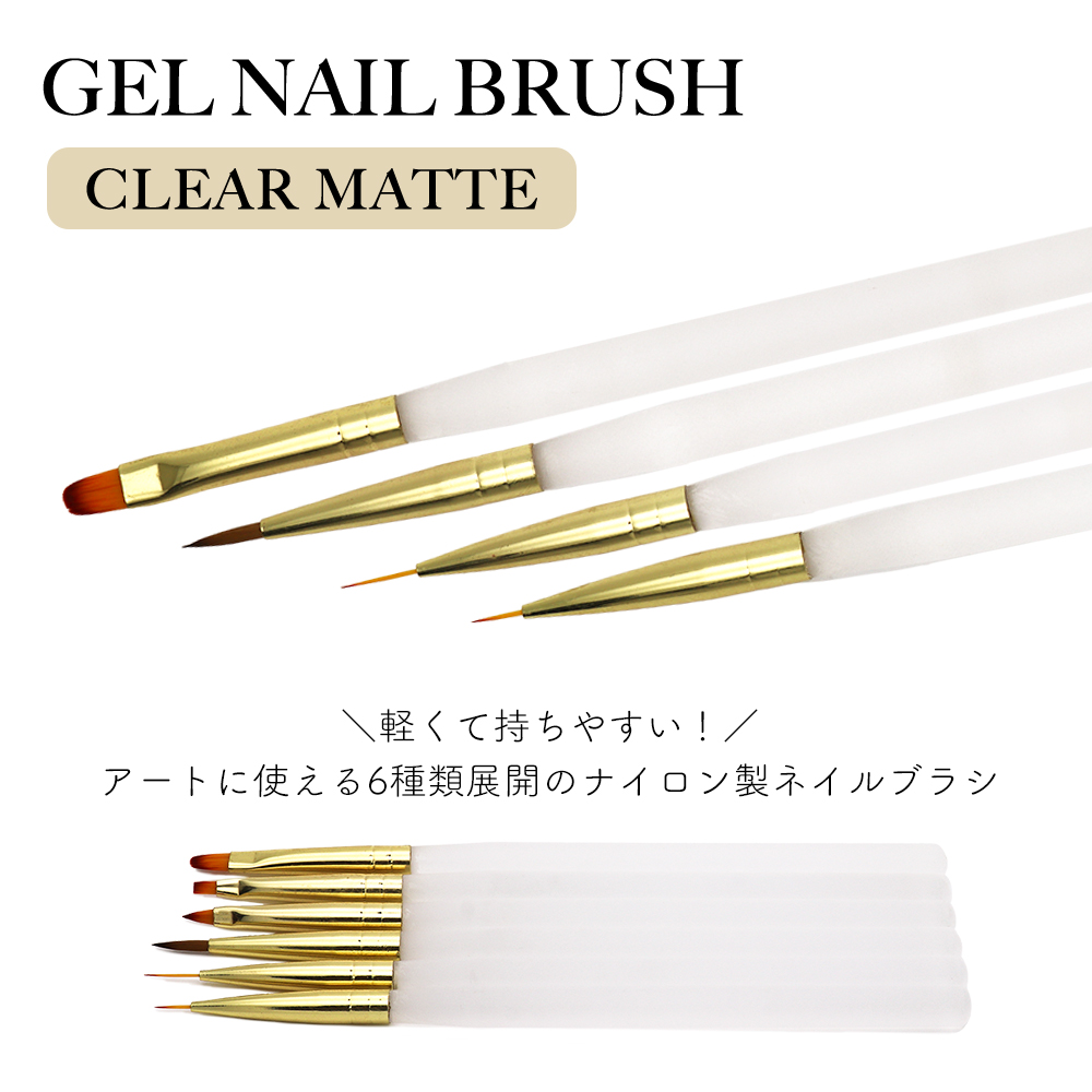 ジェルネイルブラシ クリアマット 6本セット