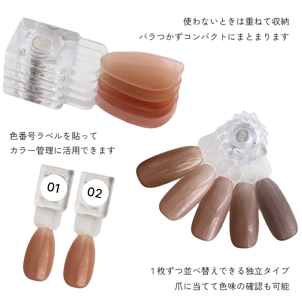 1枚ずつ並べ替えたり、指に当てて色味を見やすい独立タイプ