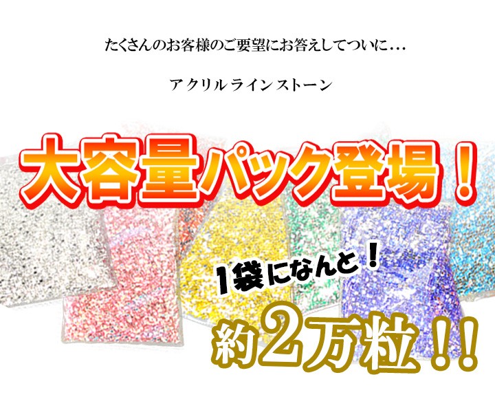 [ネコポス送料無料]ラインストーン 大容量パック 約2万粒 定番の高級アクリル 約3mm 全20色 ジェルネイル 推し活 デコ電 耳つぼ