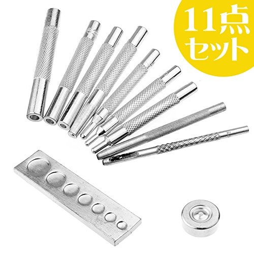 レザークラフト ホック打ち具 11点セットカシメ打ち ハトメ 万能打ち台 革細工 打ち具 工具 道具 ハンドメイド 手芸