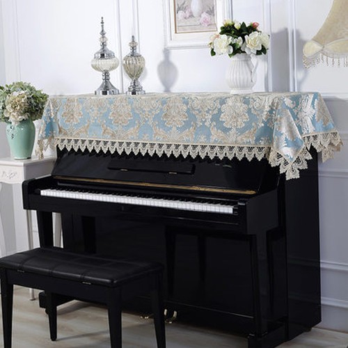 ピアノトップカバー ピアノカバー モダン シャンパン レース アップライト トップカバー 上品 エレガント ブルー