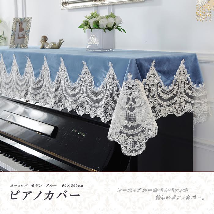 ピアノカバー ヨーロッパ モダン 90×200cm ネイビー ブルー アップライト ピアノトップカバー エレガント お洒落 上品