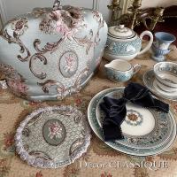 ブルーローズ:ティーコゼー・ティーコージー・ティーポットカバー:リボン付き 立体縫製:Decor CLASSIQUE