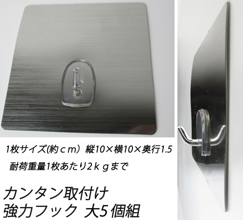 90%オフ 取付けカンタン 強力フック大(シートタイプ)5個組 キッチン雑貨 台所整理 浴室 プチプラ