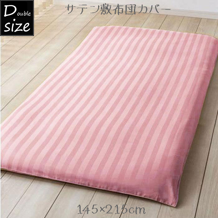 (送料無料※北海道・沖縄別途1500円)ダブルロング サテン敷布団カバー 和式用 ストライプ柄 ダブルサイズ 敷き布団カバー 和式