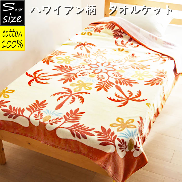 ハワイアン柄 綿100%タオルケット 約140×180cm シングルサイズ コットン パイル