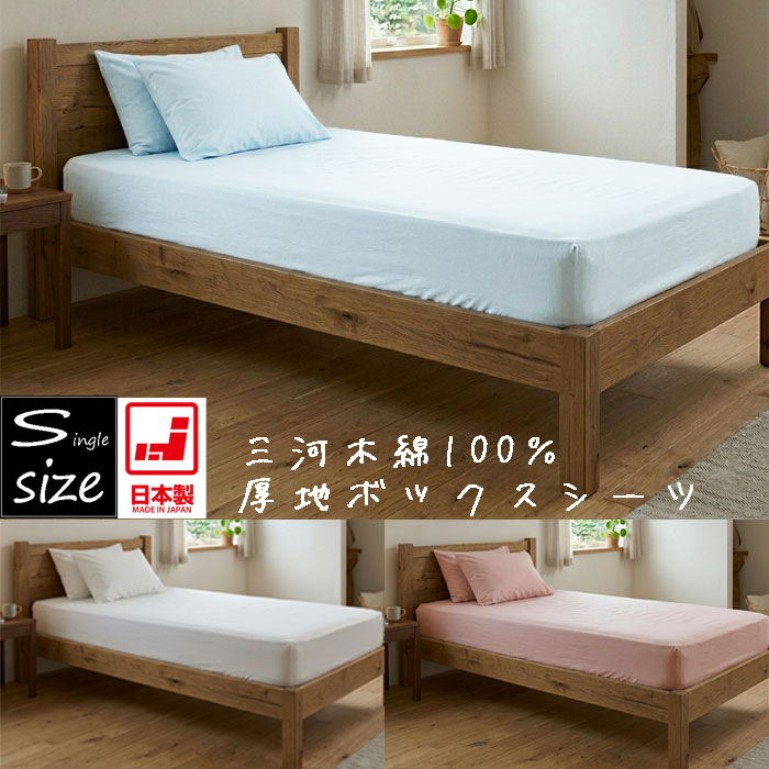三河木綿100% ボックスシーツ シングル 国産 日本製 シングルサイズ ベッドシーツ マットレス 無地 春夏秋冬