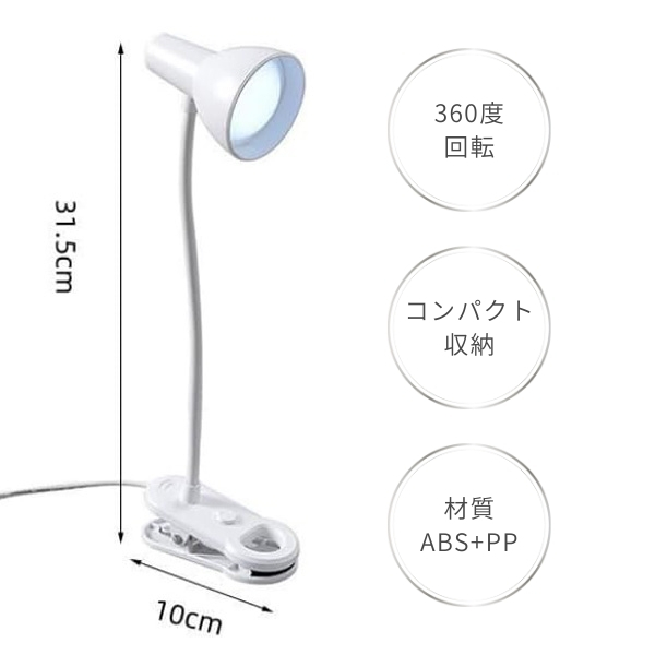 クリップライト 読書灯 クリップ照明 USB 360度回転 LEDライト ブックライト モダン インテリア 電気スタンド コンパクト ホワイト グリーン ピンク