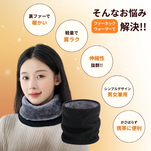 冬の寒さから首元をしっかり守る、裏ファーネックウォーマー。