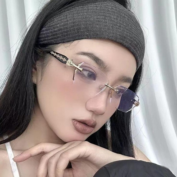 縁なしメガネ クロムハーツ風 星 スター クロス 十字架 レディース メンズ ふちなし フレームなし フレームレス 伊達メガネ 透明 クリア 軽量 ユニセックス