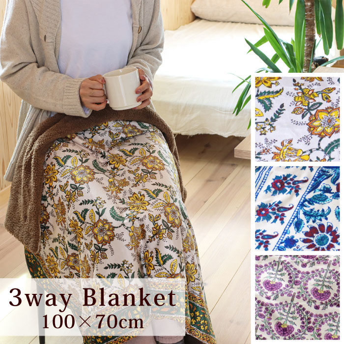 ブランケット あったか 毛布(ブロックプリント3wayブランケット(70x100cm))もこもこ ひざ掛け 羽織り 着る毛布 ボア 秋冬(ラッピング対応)