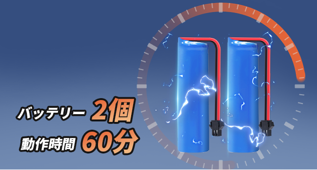 バッテリーが2個付属しており、操作時間60分の長時間動作が可能。長く遊べて満足度アップ!