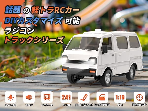 DEERC ラジコン トラック ラジコンカー 軽トラ モデル RCカー ミニラジコン 車おもちゃ 1/16スケール 2.4GHz デモモード こども向け 子供 男の子 日本認証済み