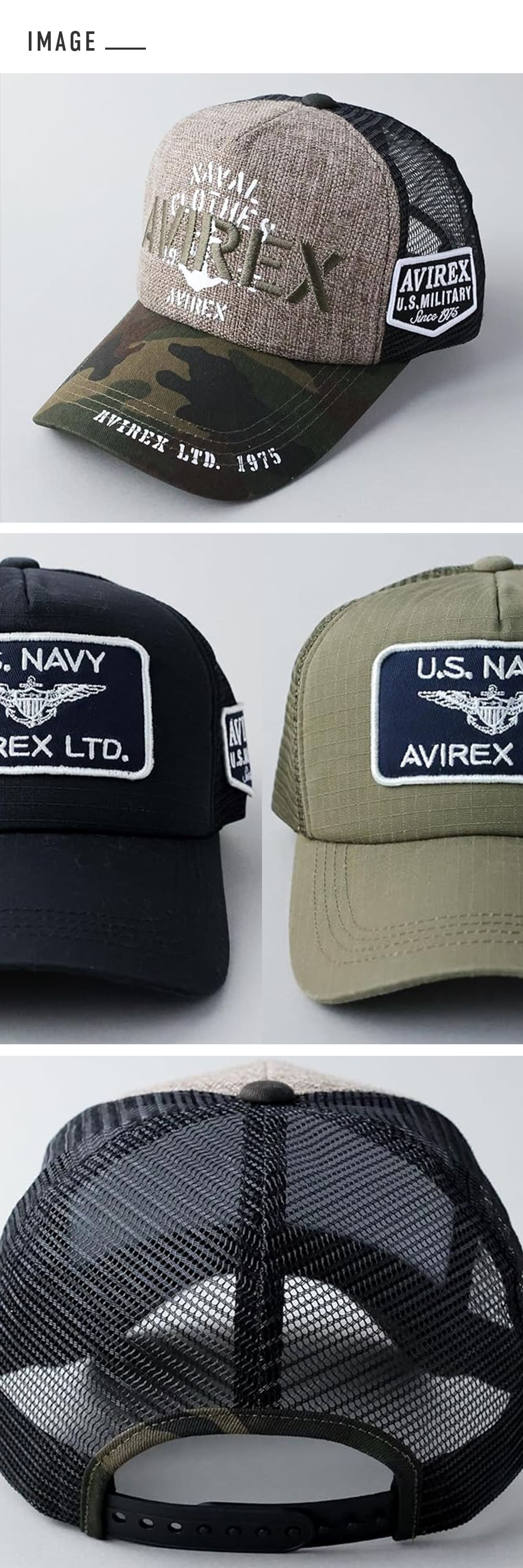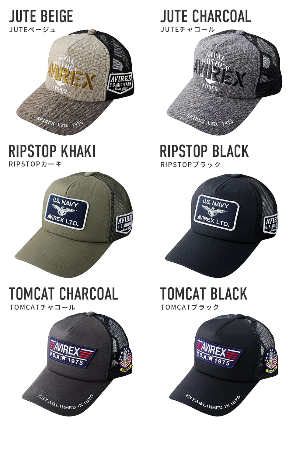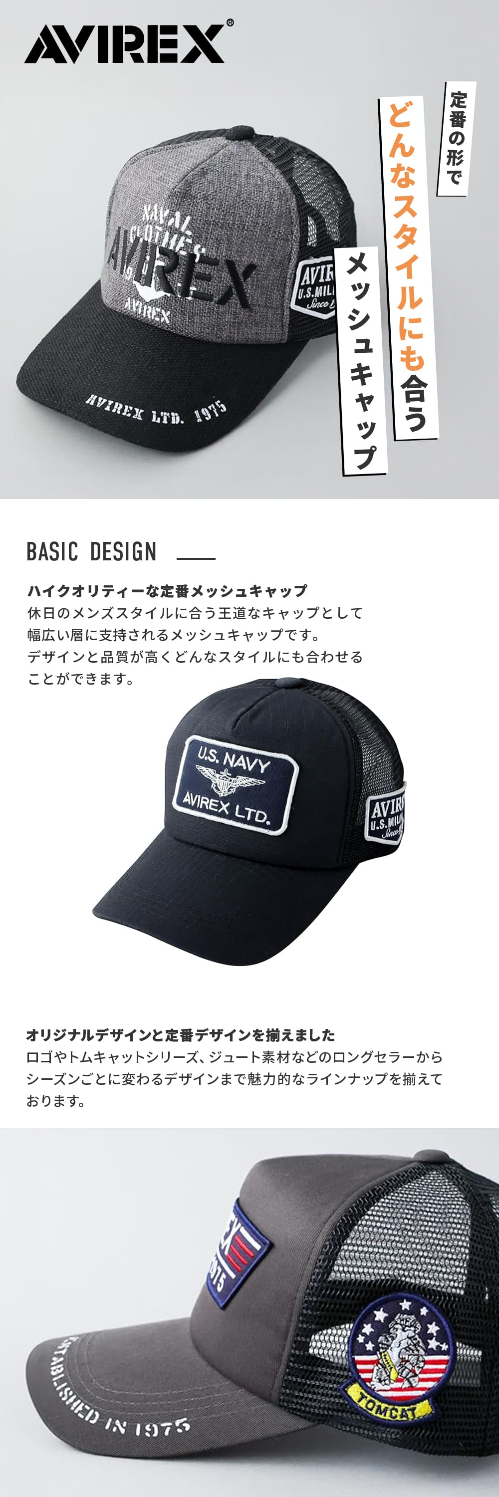 ●AVIREXに別注をかけたオリジナルデザインと定番デザイン!最新のスタンダードモデルを揃えたロングセラーのメッシュキャップ