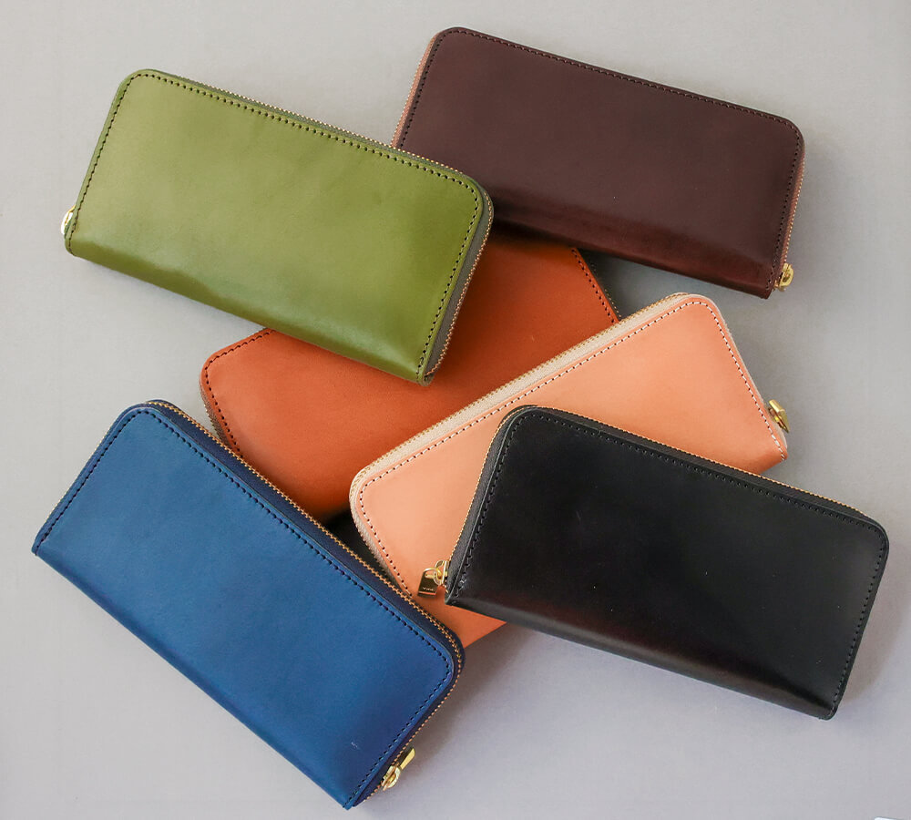 価値のある栃木レザー×姫路レザーのオールレザー仕様のラウンドロングウォレット。