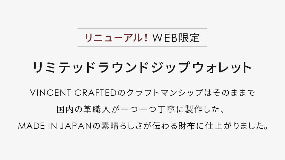 VINCENT CRAFTEDの新企画 WEB限定モデル「リミテッドラウンドジップウォレット」