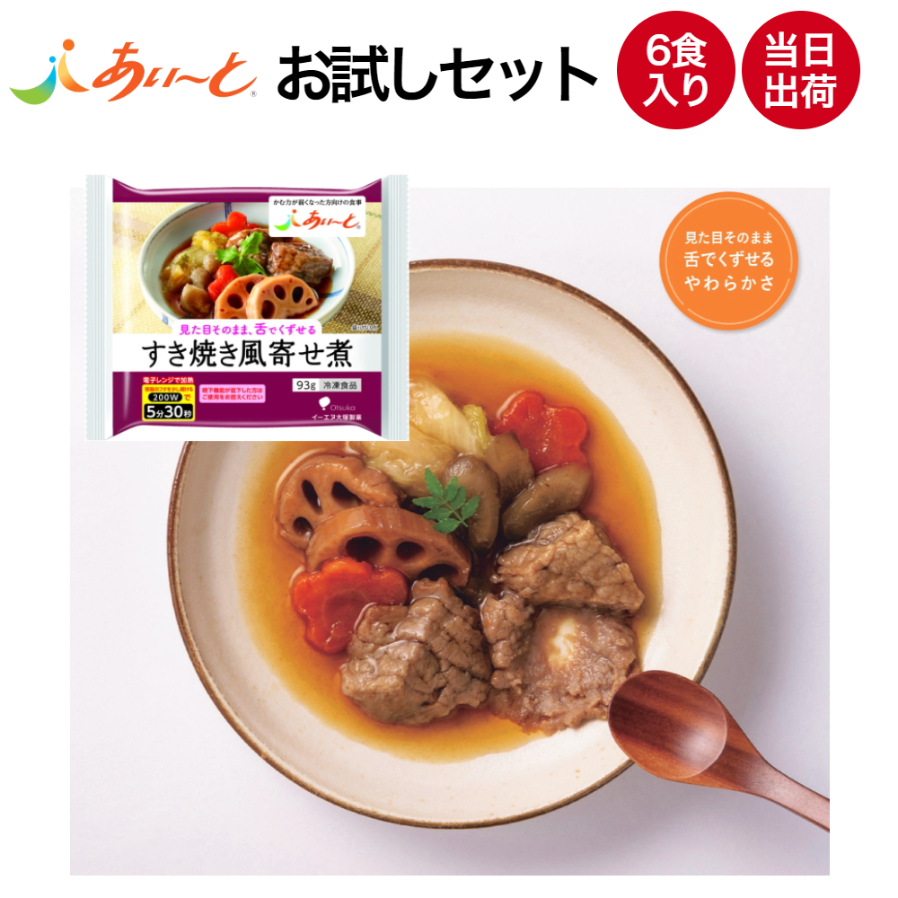 介護食 冷凍 あいーと お試しセット 6食入り 舌でつぶせる 当日発送 冷凍弁当 冷凍食品 ムース食 ミキサー食 刻み食 ペースト食 惣菜 送料無料
