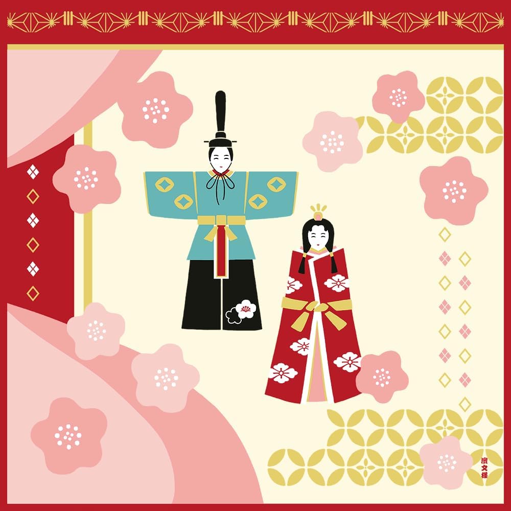 濱文様 小布 立ち雛と桃の花 ひな祭り お雛様 小風呂敷 50x50cm ランチクロス メール便対応 ポイント消化