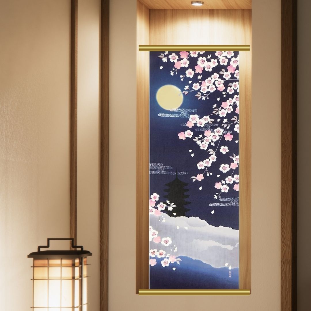 濱文様 絵手ぬぐい 月夜の桜 春 桜 手拭い 90×34cm メール便対応 ポイント消化