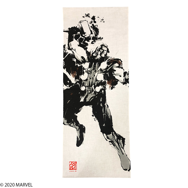 マーベルヒーローズたちが墨絵風タッチで描かれた手ぬぐいが新登場。