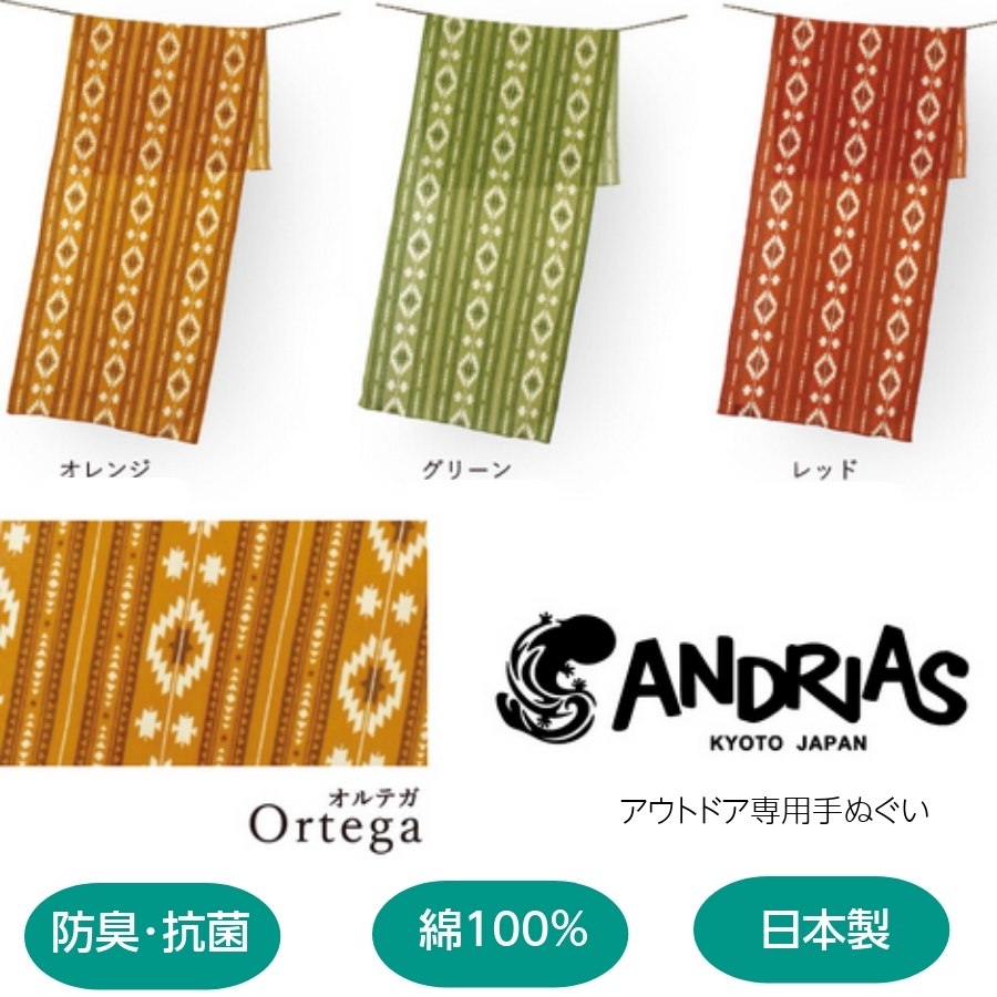 日本手ぬぐい アウトドア手ぬぐい ANDRIAS オルテガ Kyoto Japan てぬぐい おしゃれ 35x90cm 日本製 防臭 抗菌 メール便対応