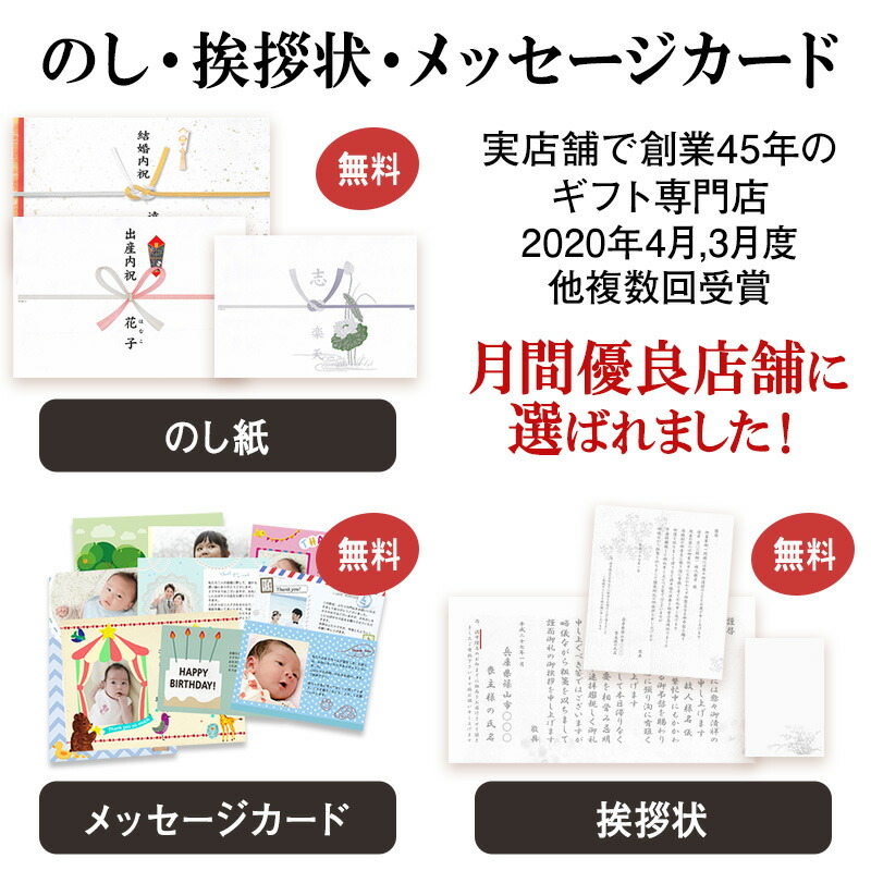 メッセージカード・のし紙・包装無料・挨拶状が無料!(一部商品除く)■さまざまなギフトアイテムをご用意しております。