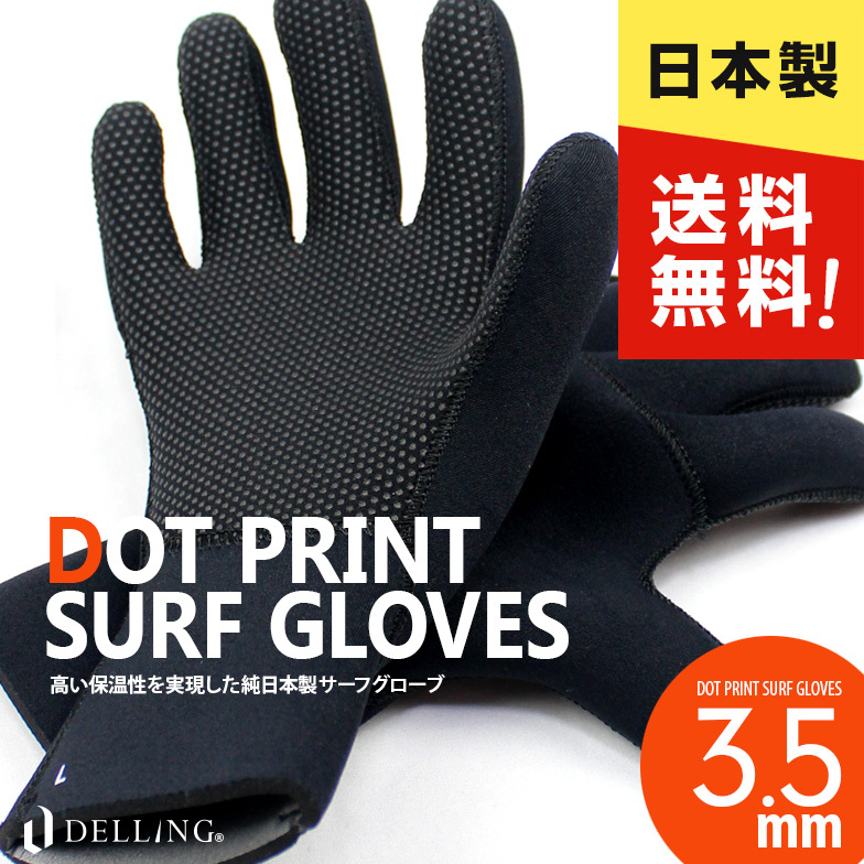 日本製 サーフグローブ 3.5mm 5本指 ドットプリント サーフグリップ サーフィン ダイビング グローブ ロブスター ボディボード ウェットスーツ