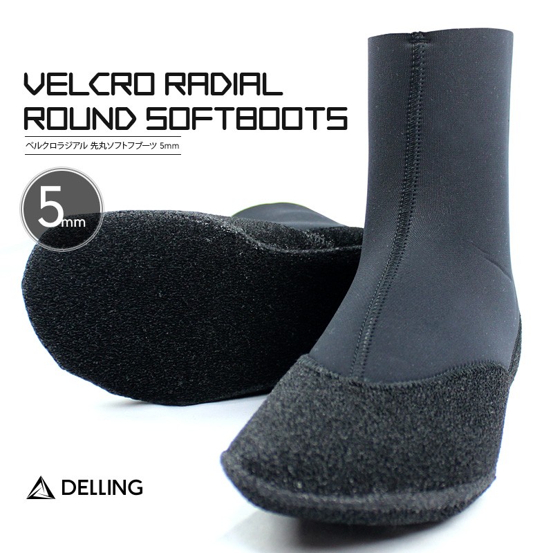 サーフブーツ サーフィンブーツ 5mm×3mm ベルクロラジアル ソフトブーツ 先丸 ウェットスーツ ドライスーツ ダイビング