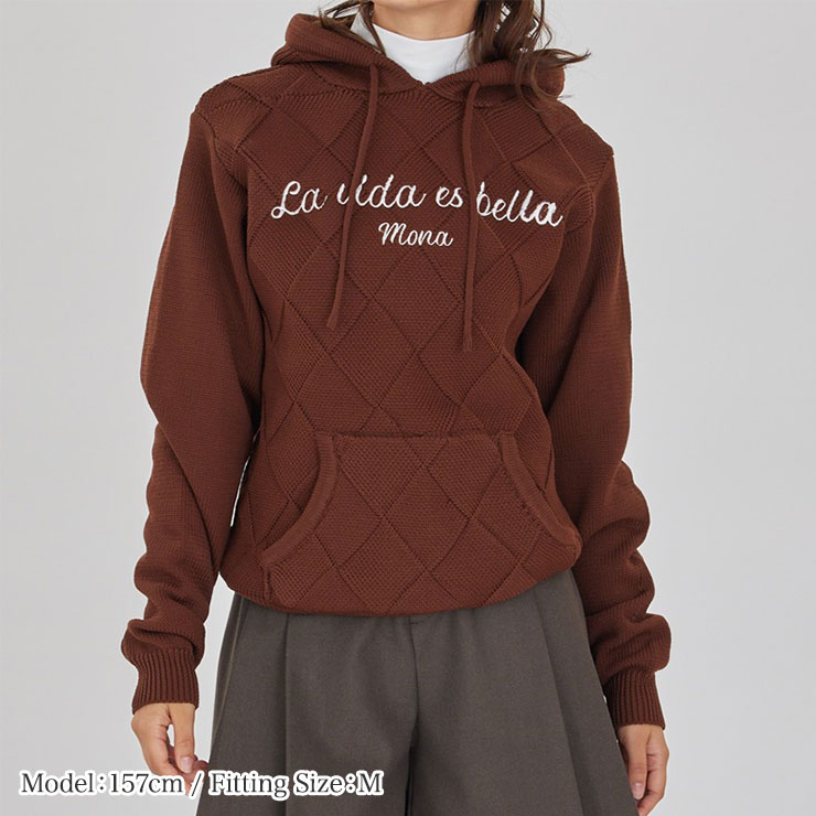 | 詳細 | ※バストは、裾幅は平置き採寸×2で掲載しています。 エリ:フード付きパーカー 伸縮性:あり 生地の厚み:普通 季節:秋・冬・春 透け感:なし ポケット:カンガルーポケット(16×30cm) ・ニットの特性上、サイズ表記より1cm前後のずれが生じる場合がございます。 ・この商品は、糸及び素材の特性上、引っかけ・引っかかりにより糸がとびだしたり、ひきつれが生じやすい性質をもっています。表面の粗い物との摩擦や引っかかりにご注意ください。 STAFF:編み目が控えめで着太りしづらいケーブルニット。 バックには袖ラインと同色の相良(さがら)刺〓があしらわれています。 文字の意味は「Coraz〓n Valiente(勇敢な心)MONA DELSOL」。 薄過ぎず適度な厚みなのでインナー次第でロングシーズン着用できます。 |