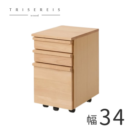 デスクワゴン サイドチェスト スリム 幅34 完成品 ワゴン 収納 学習机 木製 子供 アルダー材 ナチュラル 法人割 引っ越し 引越し
