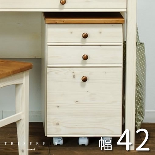 デスクワゴン サイドワゴン デスクチェスト 完成品 パイン材 ホワイト 木製 子供 引き出し 法人割 引っ越し 引越し