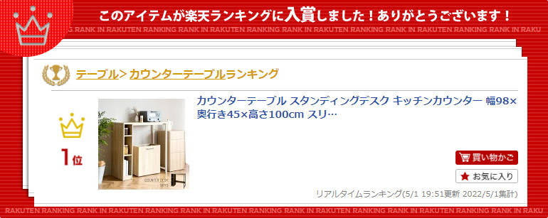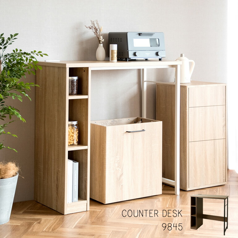 | 幅98×奥行45×高さ100のスリムでハイタイプなキッチンカウンター兼スタンドデスクは、作業がしやすい天板と収納棚があり、壁面でも対面でもお使いいただけます。 ごみ箱を入れても上にたっぷりと余裕があるオープンスペースや高さの変えられる収納棚、2つのコンセント付きなど汎用性が高く使いやすいのが特徴です。 お色はブラウンとナチュラルの2カラーでどちらも主張しすぎず、おしゃれなカフェのように演出してくれます。 モニターや撮影条件により実際のお色と異なって見える場合がございます。予めご了承の上、ご購入をお願い致します。 |