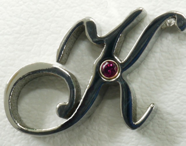 石留め見本 "イニシャル『K』" "ストーン『7月』"