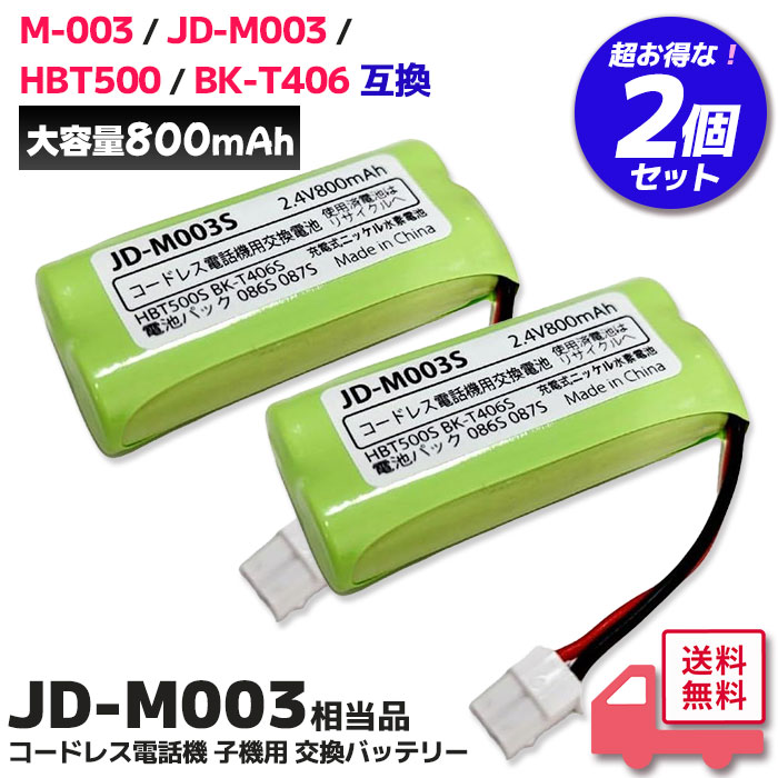 JD-M003 相当品 2個セット コードレス電話機 子機用 交換バッテリー 相当品 JDM003S パナソニック 互換 シャープ 互換 ( M-003 / JD-M003 / BK-T406 相当)