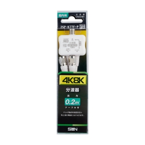 【仕様】 ●新4K8K衛星放送受信を含むすべての放送に対応したケーブル付き分波器です。<br>●ケーブルは細く(2.5C)、やわらかいので狭いテレビの裏でもすっきり配線ができます。<br>●電波法の技術基準に該当する帯域の漏洩電界強度に対応したJEITAのSHマーク登録品です。<br>●RoHS2の特定有害10物質の確認ができたECOマーク対応品です。<br>●屋内用ケーブル付分波器<br>●色:白<br>●ケーブル長さ(?):出力0.2<br>●本体寸法(?):34×45×22(突起部含まず)<br>●質量:75?<br>●パッケージ寸法(?):200×50×25<br>●CS/BS電流通過型<br>●出力:F型コネクタ<br>●サイズ(?):200×50×25<br>●質量(1):1