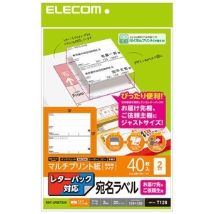 ELECOM 宛名ラベルシール お届け先・ご依頼主用 レターパック対応 マルチプリント紙 強粘着タイプ 40枚入(A4・2面×20シート) EDT-LPSET220