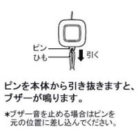 【特長】 ●雨の中でも携帯できる防滴構造です。(JIS IPX1) ●面ファスナー付き取り付けベルトで、ランドセルのショルダーベルトに簡単に取り付けできます。 ●暗闇で光る蓄光パネル付きです。 【仕様】 ●メーカー:東芝 ●型番:DB82W ●商品名:防犯ブザー ●使用電池:単4形×1本(別売) ●電池寿命(20℃時):連続吹鳴約2時間30分(アルカリ乾電池使用時) ●防水性能:防滴構造(JIS IPX1) ●音量:約95dB(A)、(1m前方・電池初期時) ●付属品:吊り下げストラップ/ランドセル取り付けベルト ●本体寸法(mm):約幅50×奥行29×高さ57 ●本体質量(g):約53(アルカリ乾電池・付属品含む)