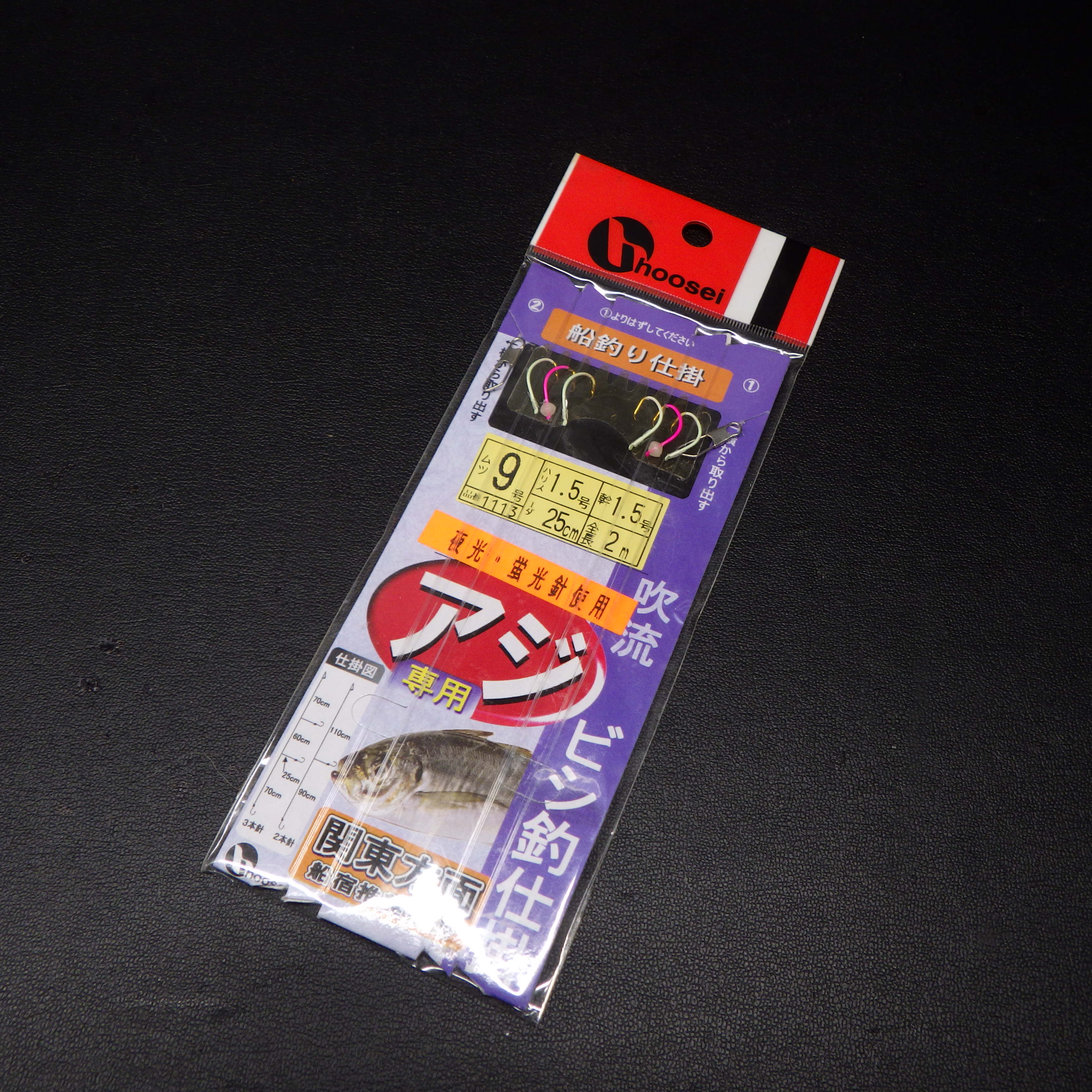 hoosei 船釣り仕掛 ムツ9号 ハリス1.5号 幹1.5号 枝25cm 全長2m 夜光・蛍光針使用 ※在庫品(31n0705)※定形外郵便