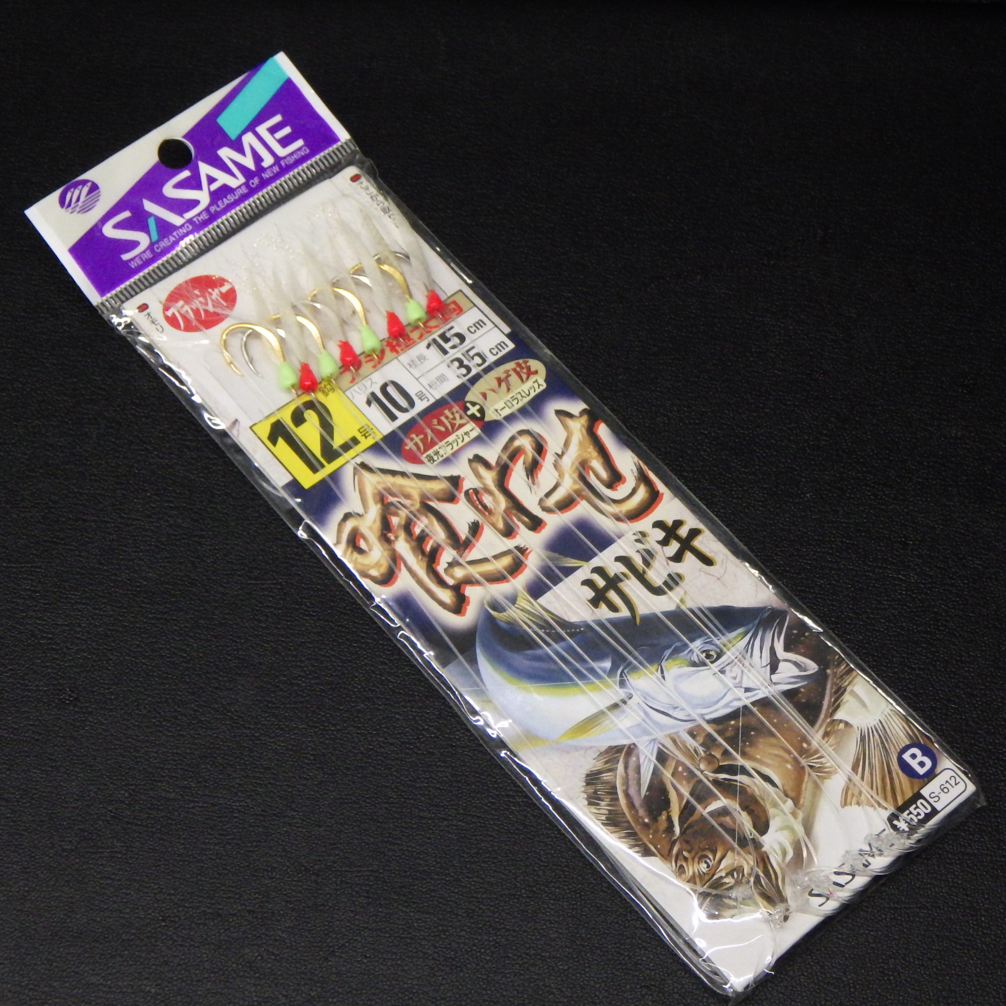 Sasame 喰わせサビキ 8本鈎フラッシャーサバ皮+ハゲ皮 鈎12号 ハリス10号 枝長15cm枝間35cm ※未使用在庫品(60n0608)※クリックポスト