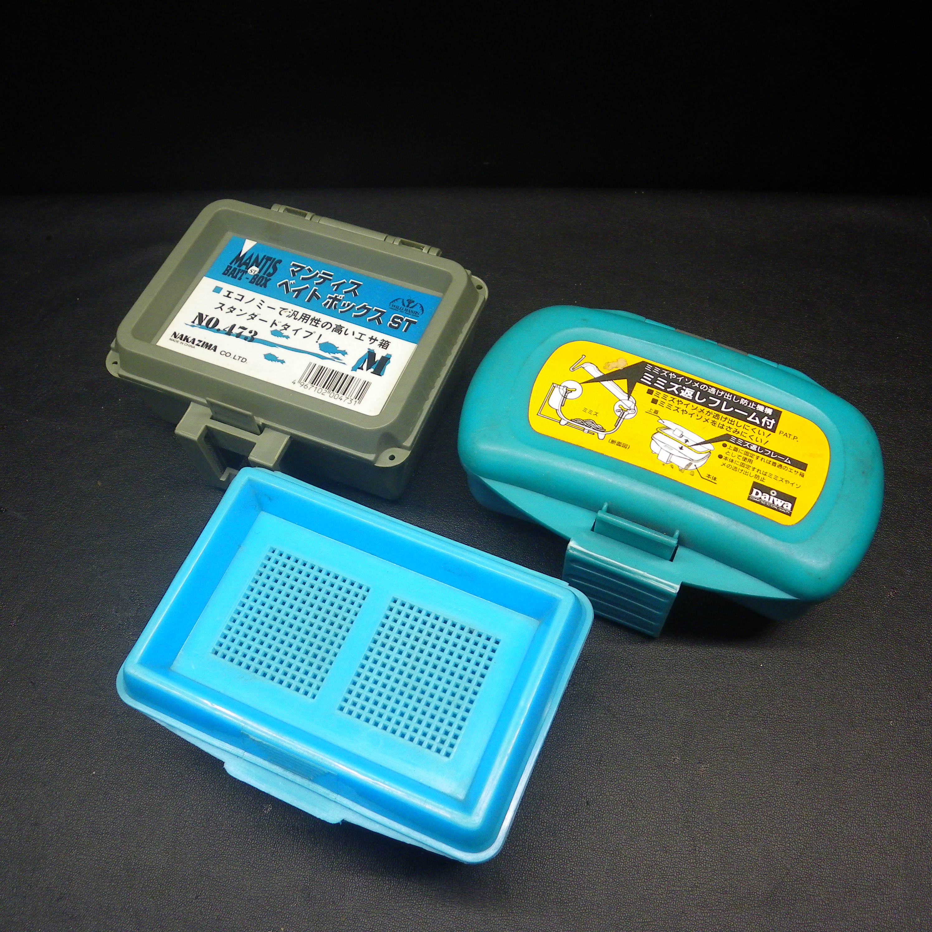 Daiwa エサ箱 ミミズ返しフレーム付 マンティスベイトボックスST 他エサ箱合計3個セット ※中古在庫品 (xt0500) ※定形外郵便
