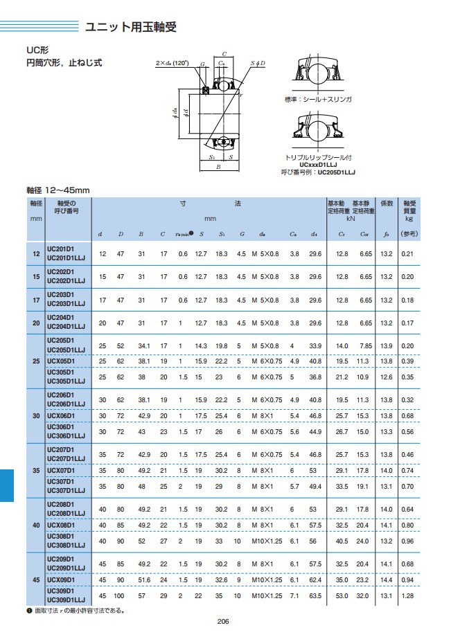 NTN製のベアリングユニット用玉軸受です。円筒穴径の止めねじ式になります。